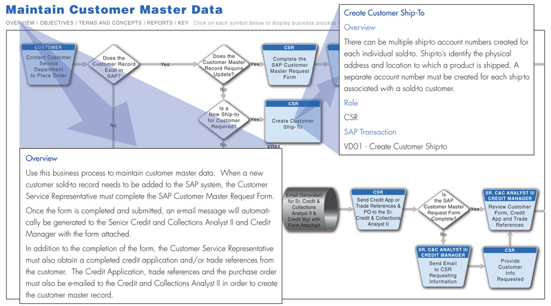 Business ProcessEnd2End Learning has developed a formal, structured process based learning approach that enables employees to receive the optimum benefits from the system. Process performance is the payoff. This approach:
